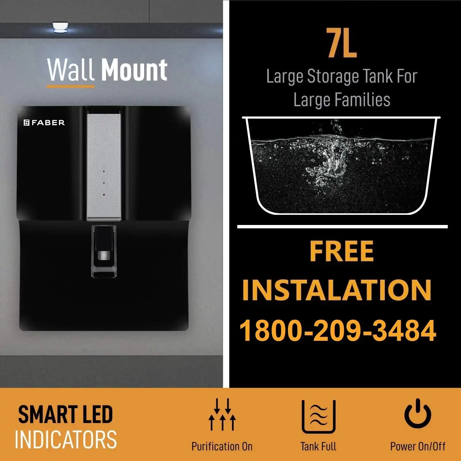 Faber Galaxy Pro Plus RO+UV+ MAT,7 Liters, 7 Stage Mineral Water Purifier with Upto 2500 TDS, Black (FWP Galaxy PRO Plus BK)