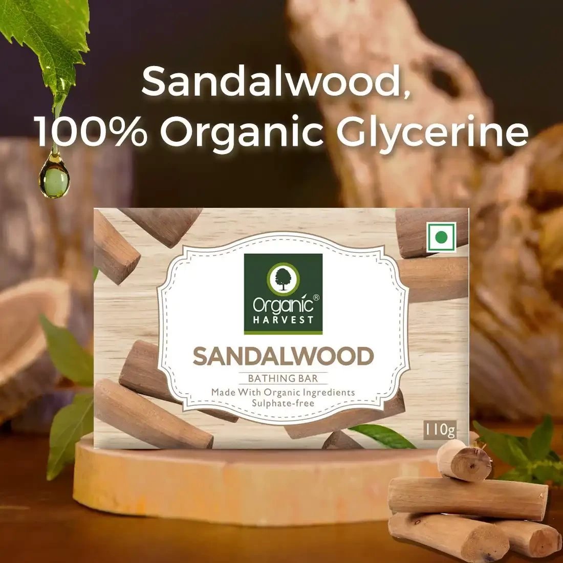 · MOISTURISING AND CLEANSING: Organic Harvest Sandalwood Bathing Bar gently cleanses the skin while retaining its natural moisture. It is made of certified organic and sulphate free ingredients which softens the skin and provides nourishment to the skin. The fragrance of Sandalwood helps in uplifting the mood and soothing the senses!