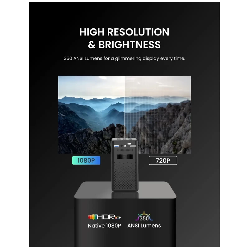- Large screen projection with high brightness - Project your screen on a larger area to get a screen size of almost 150 inches. The high-resolution projection with the brightness of up to 350 ANSI Lumens gives you a better screen experience to watch your favorite movies and OTT shows.