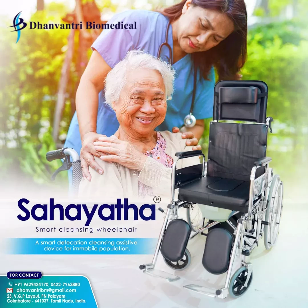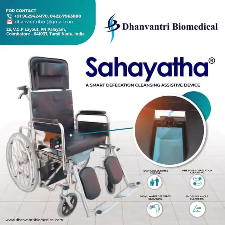 Sahayatha assist the patient in defecation cleansing, with in-built defecation and cleansing assembly.