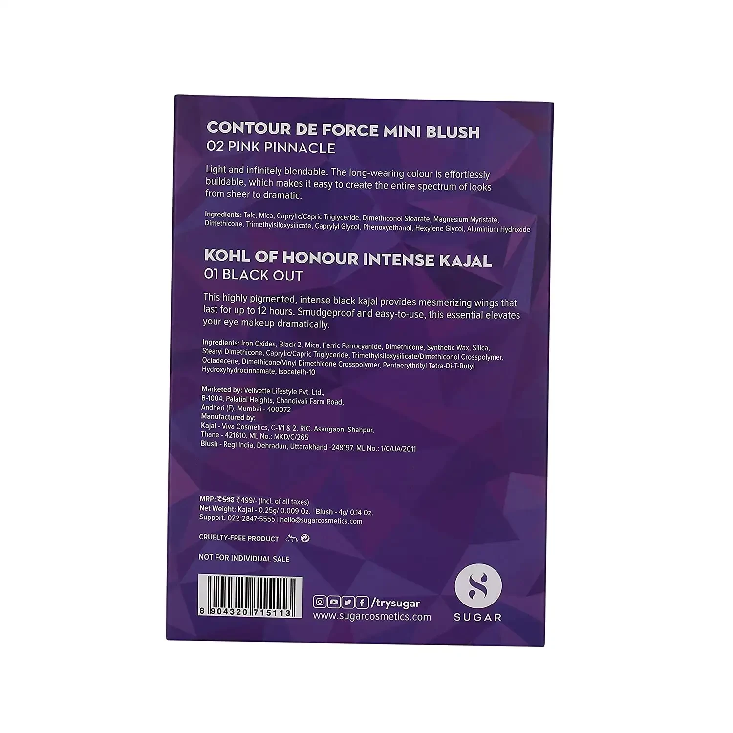 · includes kohl of honour intense kajal, 01 black out (black) and contour de force mini blush - 02 pink pinnacle (deep rose)