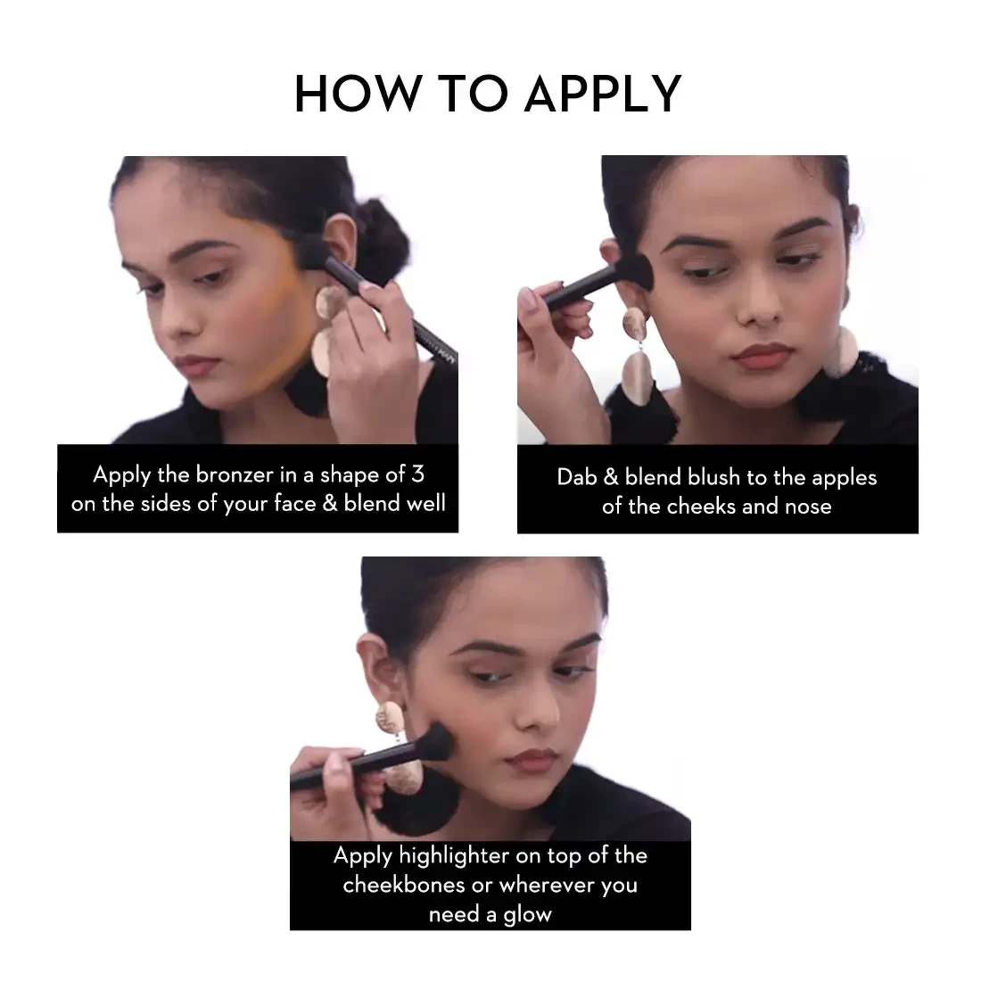 This subtle-themed face palette contains one soft, cool shade each of highlighter, bronzer and blush, carefully picked to create a moderate look. It is all you need when you wish to keep things simple yet fabulous.