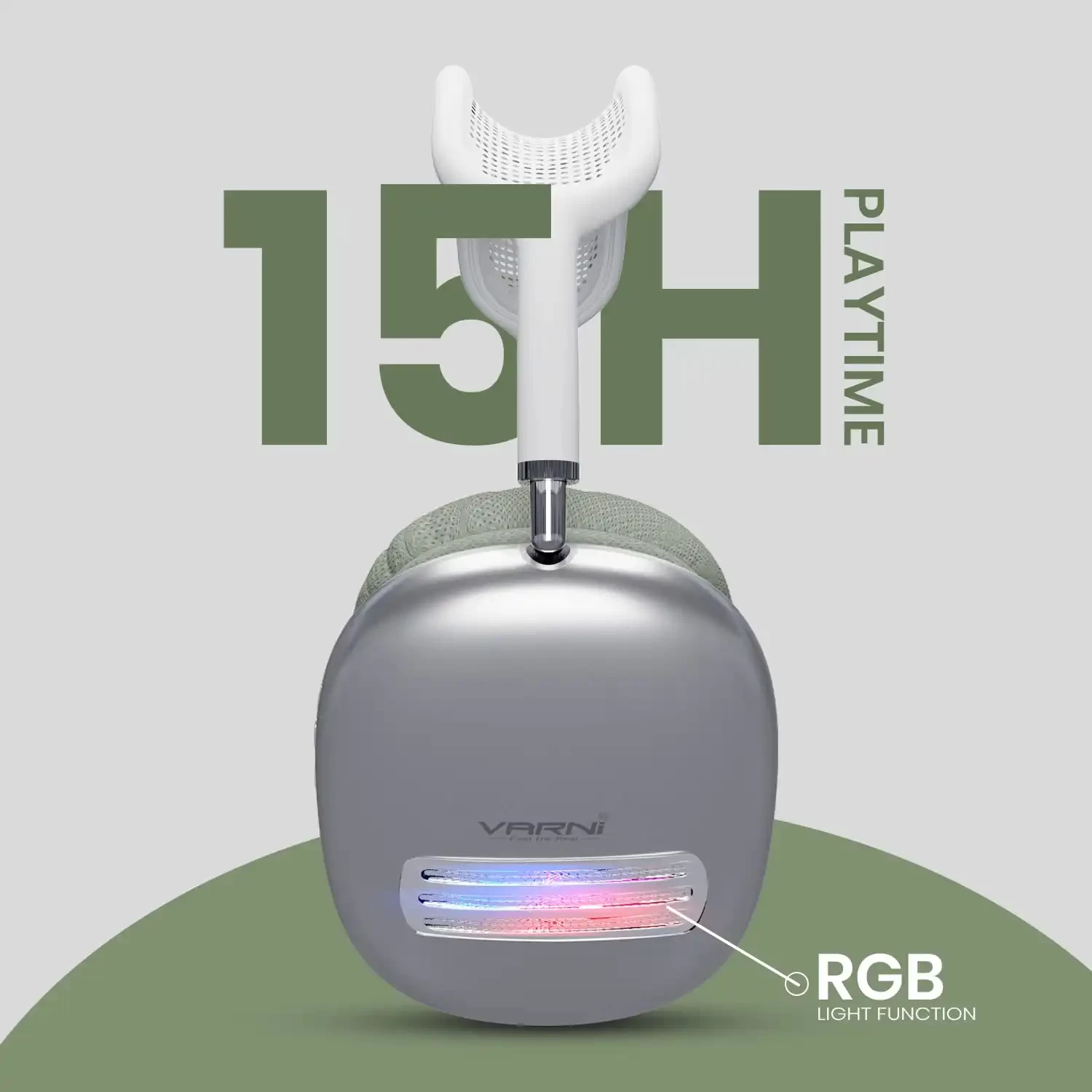 Varni Go Max On Ear Bluetooth Headphones with Upto 15 Hours Playback, RGB Lighting, Lightweight with Active Noise Cancellation(White)