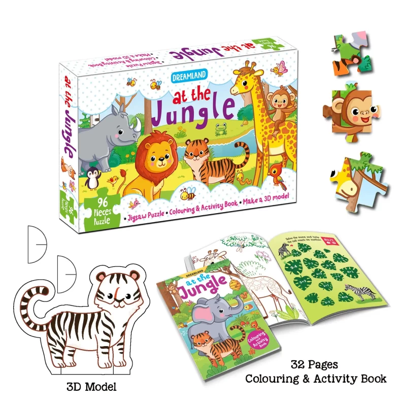 Designed for kids to play and enjoy, this puzzle box comes with 96 pieces of durable, high-quality Jigsaw Puzzles, a Colouring and Activity book and a sheet to colour and create a 3-D Model. It is perfect learning tool to enrich kids' cognition, concentration and creative skills while enchancing their intelligence and self-confidence.