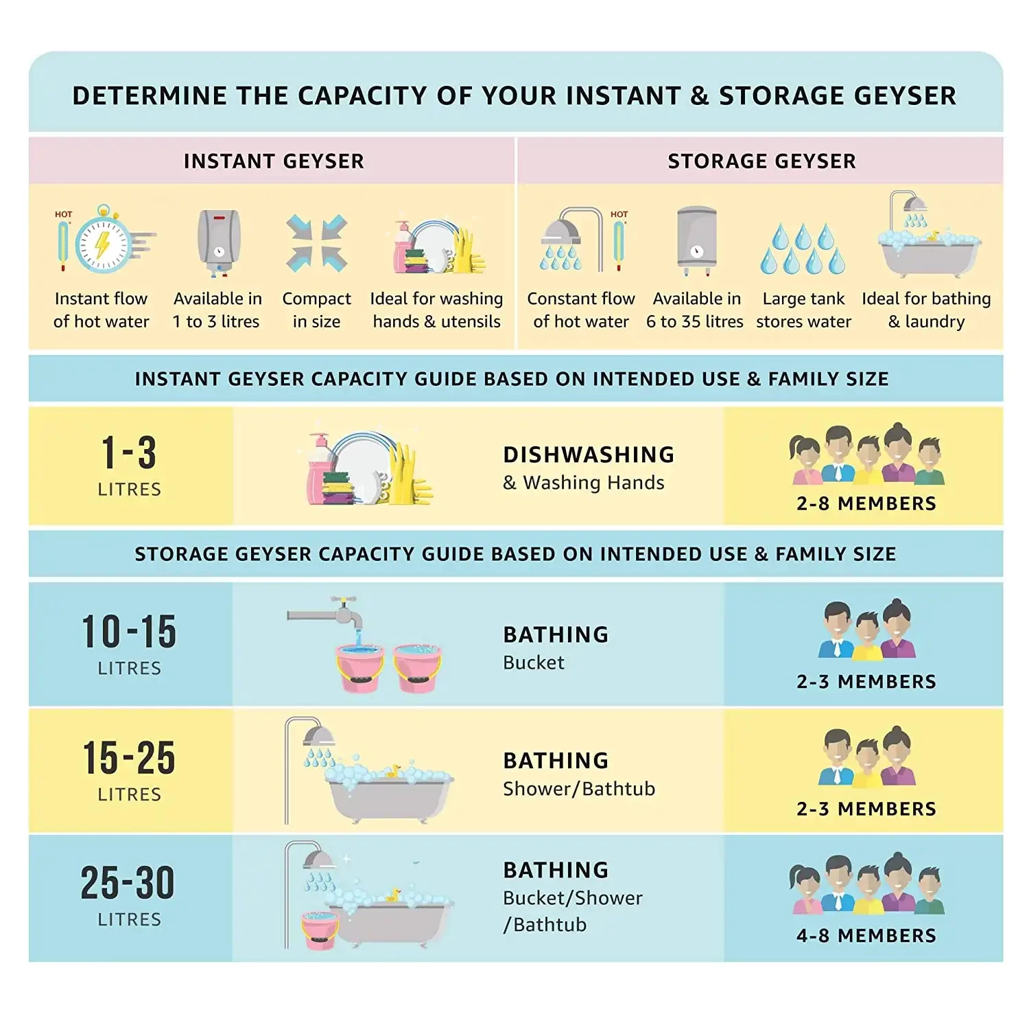 • Included in the Box: 1 Geyser, 1 User Manual, Wall mounting accessory, Connecting Water Pipes
