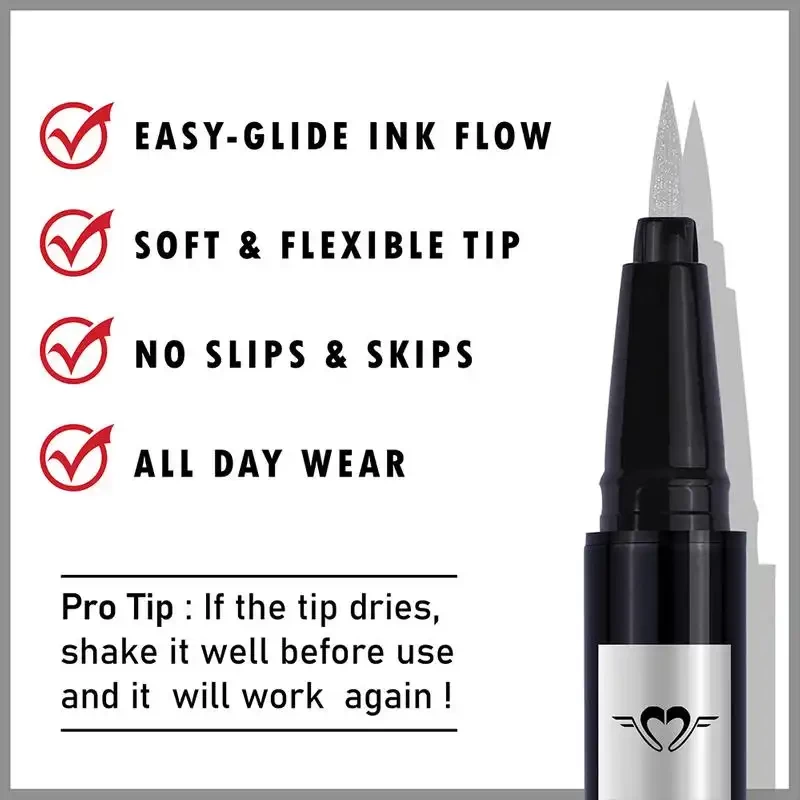 Gush over stunning eye looks! Now master them yourself with the Glitz Waterproof Eyeliner. Featuring a slender and precise felt tip with long lasting and smudge-proof formula. Its deep intense color accentuates your eye makeup and adds a dash of dramatic beauty and glamour to them. The smooth tip applies the liner over eyelids in an even stroke and can be used for various looks you want to create. Its precise tip easily glides across the eyes, allowing you to create fine lines or sultry cat eyes with controlled application and intense color payoff. Its waterproof formula helps to keep your eye look on point all day long without fading or smudging. It comes in 10 different playful colors ranging from matte to shimmer.