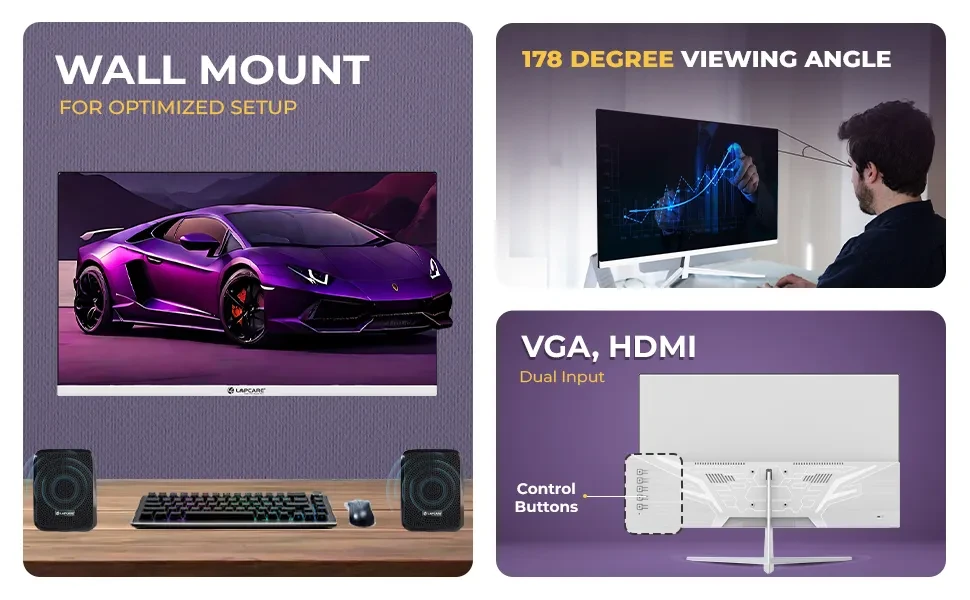 Viewing Angle, VGA+ HDMI Ports and Slim Design & Frameless Body.