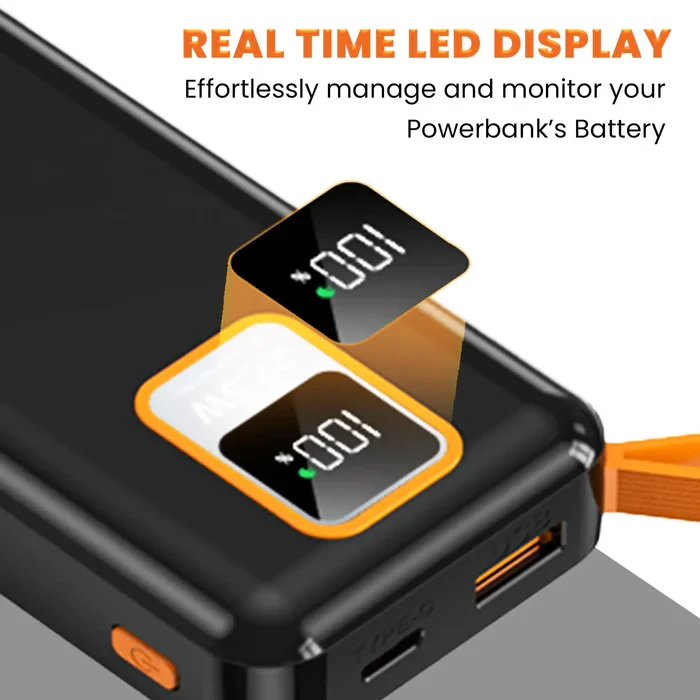 Real-Time LED Battery Display: Stay in control with the built-in real-time LED battery display. This helps you to effortlessly monitor your power bank's battery and charge it accordingly.