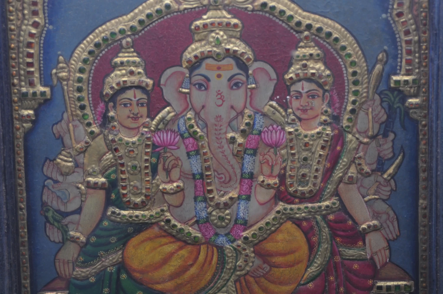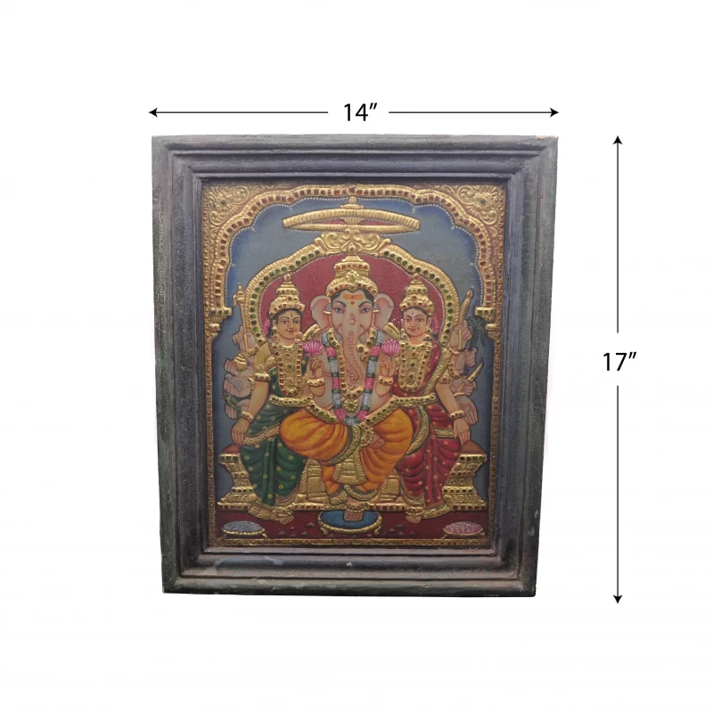 Lord Ganesha With Family - Tanjore Painting