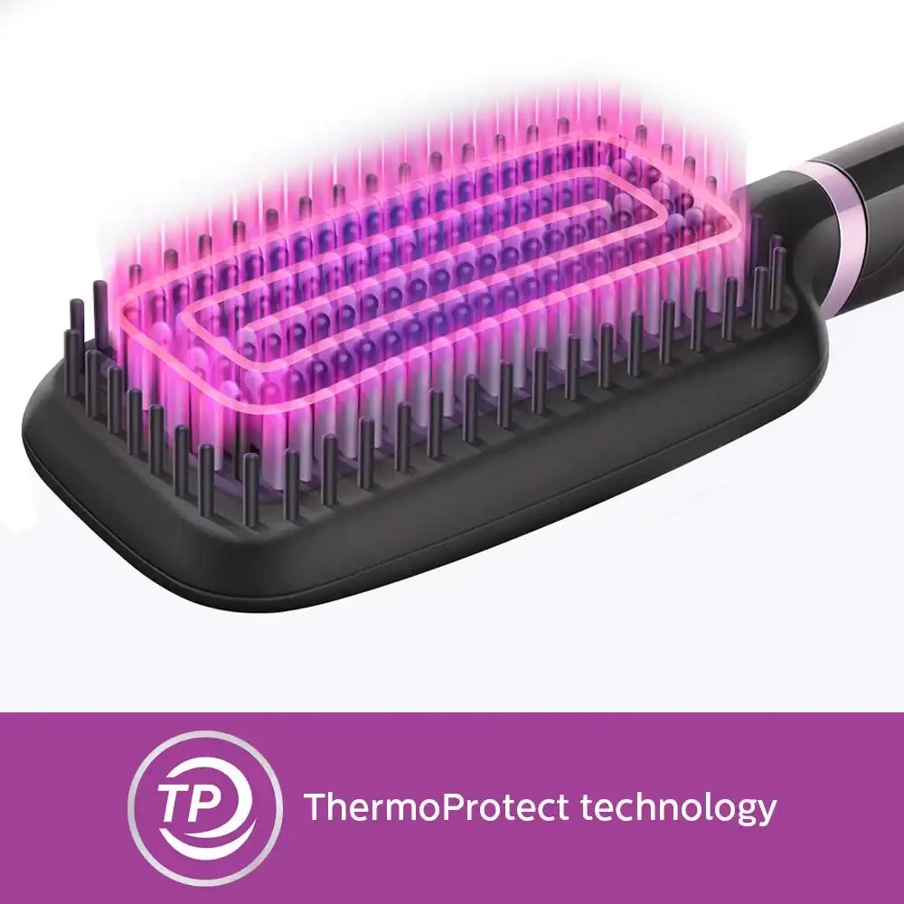· Triple bristle design gently detangles and straightens while protecting your scalp from heat