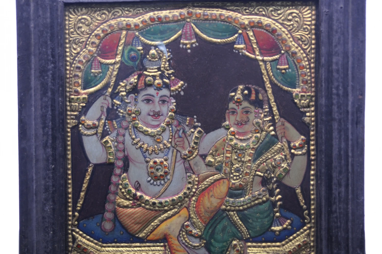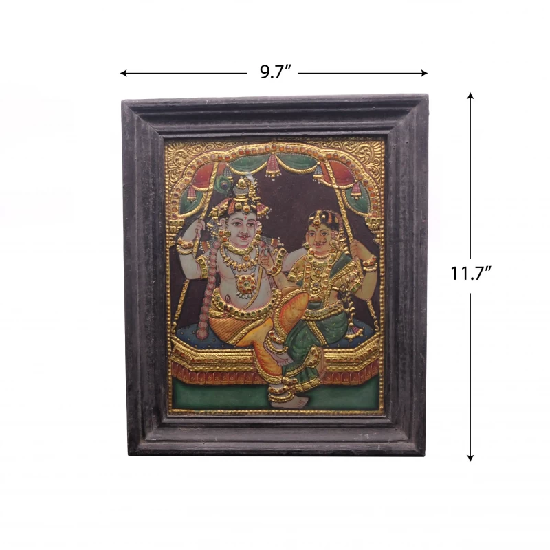 Radha & Krishna On Swing - Tanjore Painting