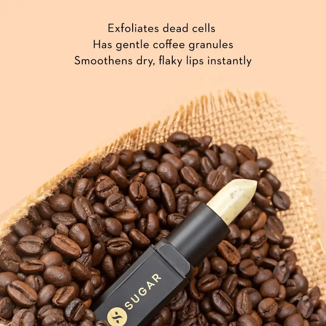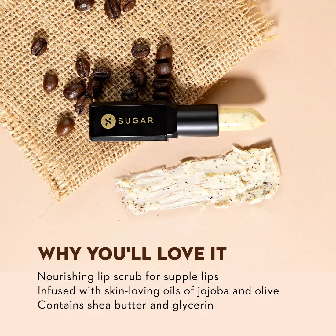 Are dry, flaky lips ruining your perfect pout? Try the super nourishing SUGAR Coffee Culture Lip Scrub. This unique lip scrub in a easy-to-use stick format is infused with tiny granules of coffee along with coffee seed oil which gently exfoliates your lips to reveal smooth, plump and hydrated lips.