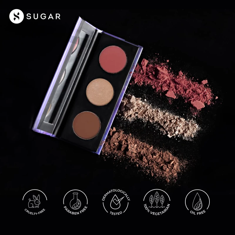 This subtle-themed face palette contains one soft, cool shade each of highlighter, bronzer and blush, carefully picked to create a moderate look. It is all you need when you wish to keep things simple yet fabulous.