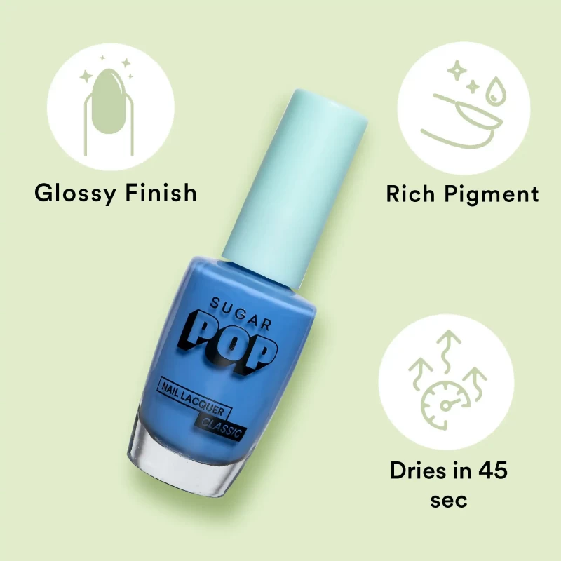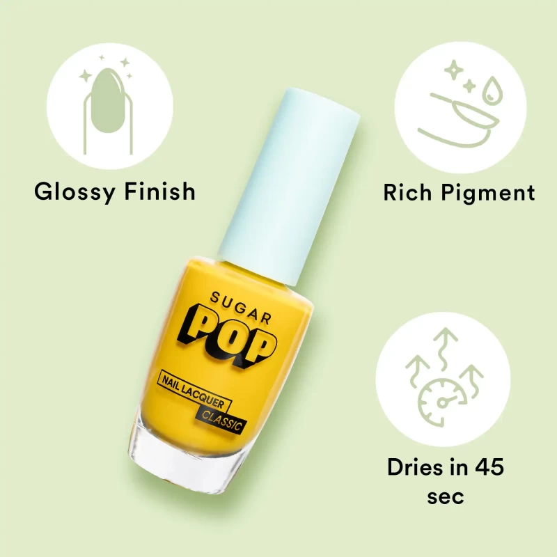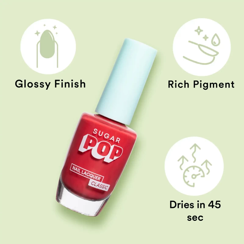 A collection of stunning shades ranging from subtle to vibrant, SUGAR POP's Nail Lacquer adds just the POP of colour you need to your look. The pigment-rich and intense formula takes your style game up - and how! The quick-drying texture also makes it a favourite for those last-minute plans.